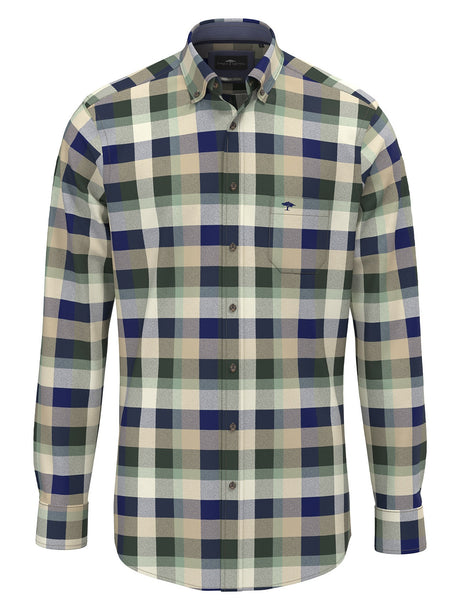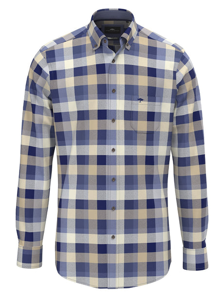 FYNCH HATTON Pure Cotton Shirt - Men's Combi Check - Blue/Berry
