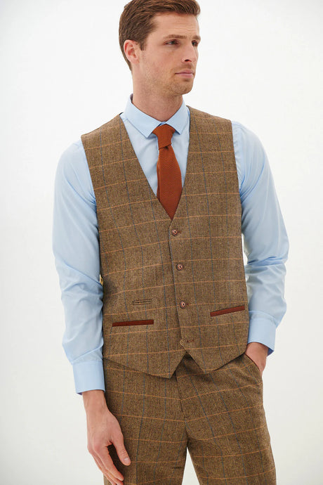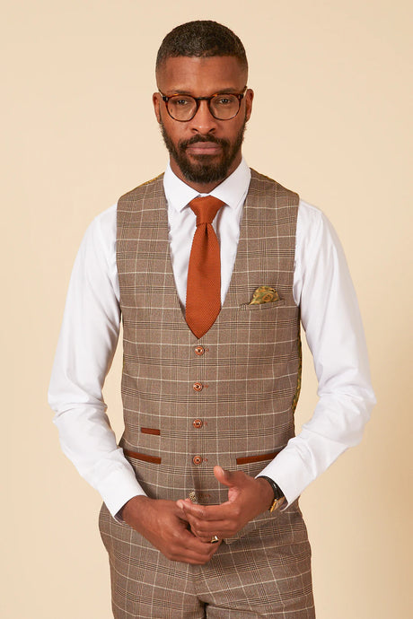 Low stock (2 units)£79.95£160.00Unit price /Unavailable50% OFF - MARC DARCY Men's Ted Single Breasted Waistcoat - Tan Check - Size: 52