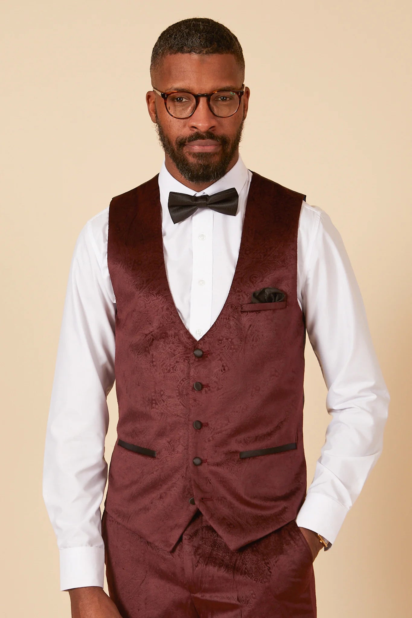 MARC DARCY Men's Simon Velvet Jacquard Waistcoat - Wine