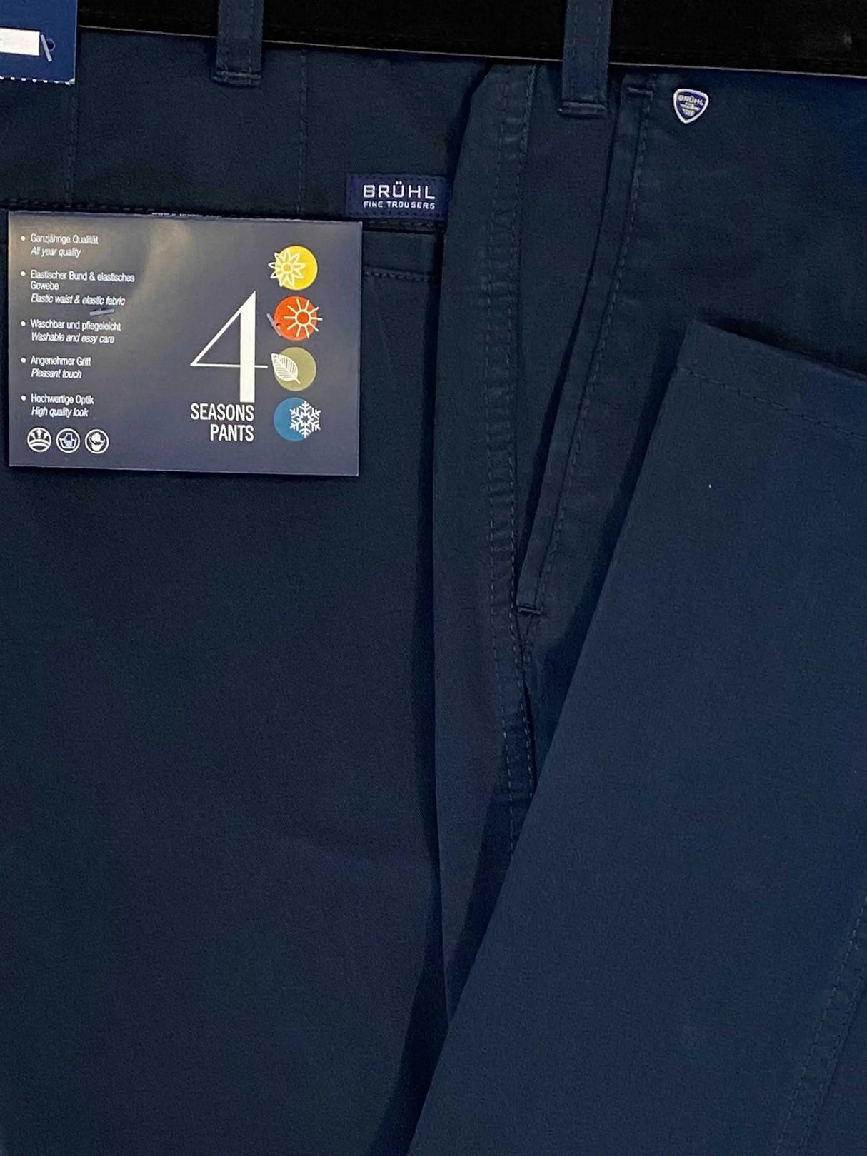 The Bruhl Montana Four Season Chino. Chinos of a high quality that can be worn all year round whatever the weather. With an elastic waistband and stretch fabric they offer a very comfortable fit, along with a pleasant touch and a high quality look.