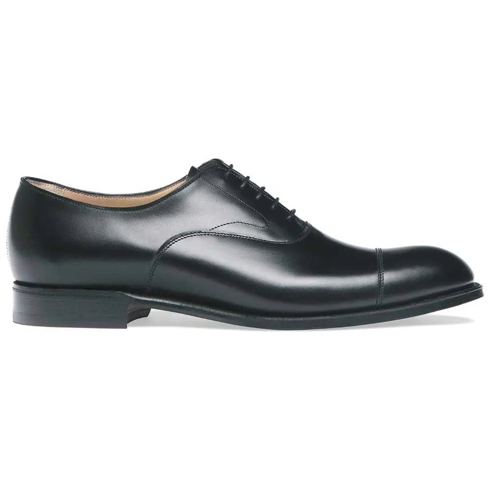 Cheaney Alfred is a classic capped Oxford lace up shoe in black calf leather, hand crafted in the Northamptonshire factory.