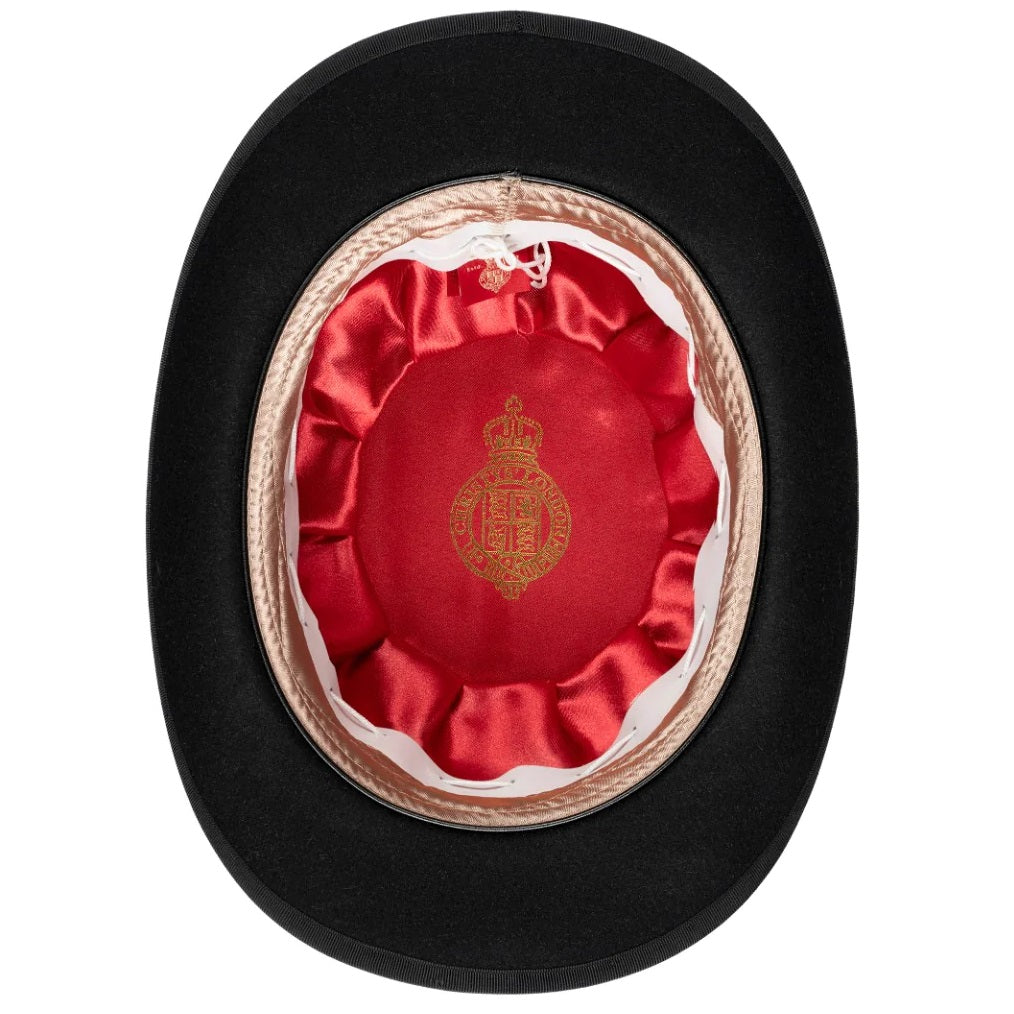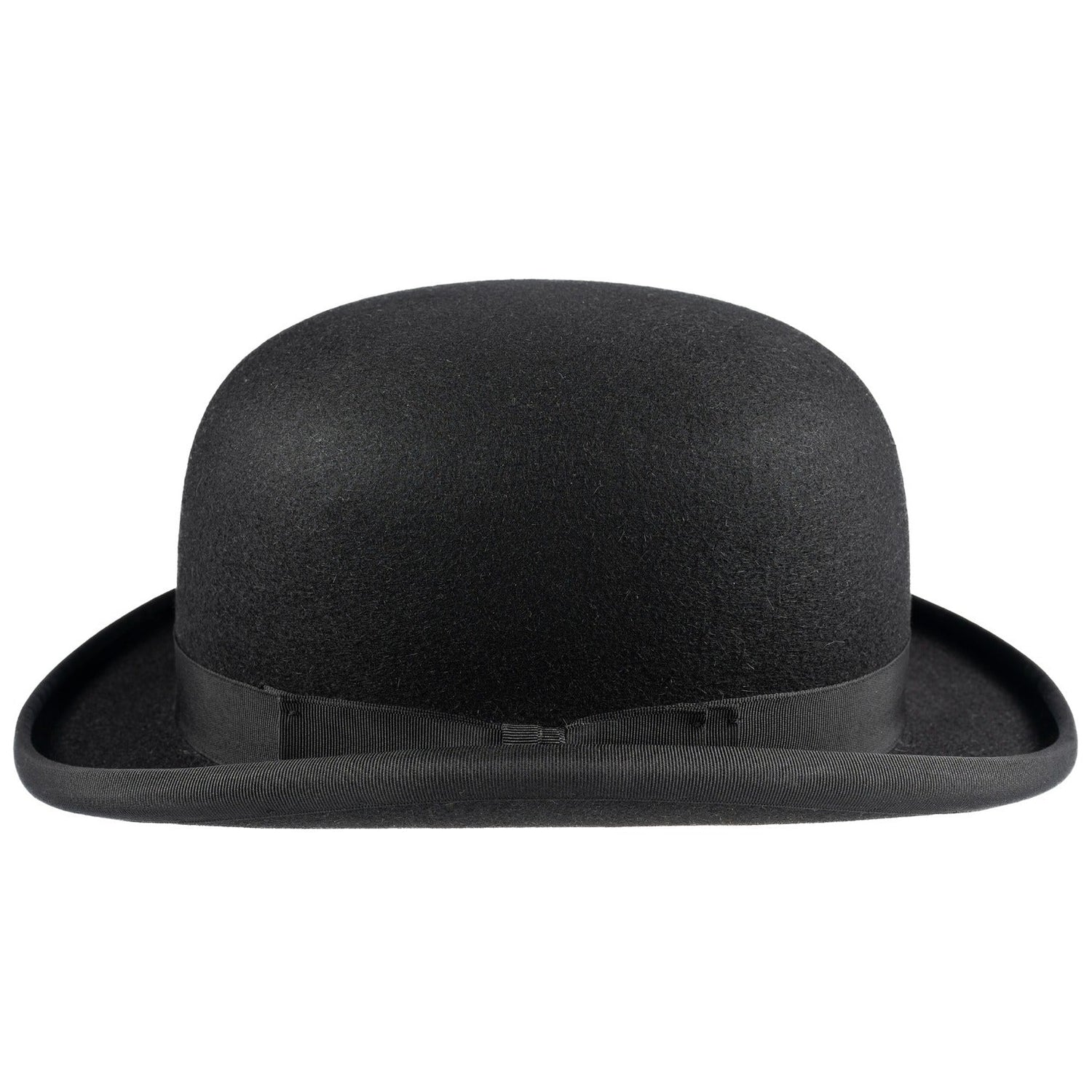 A Luxury Fur Felt Devon Bowler Hat by Christys' with 2.5cm Grosgrain Ribbon Band and Bow with an adjustable Hunting Pad and Red Satin Lining.