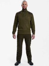 Deerhunter Carlisle Knit with Storm liner is a very durable men's Lambswool mix ¼ neck knitted sweater with a Storm liner membrane Laminated onto the fabric between the outer and inner layer for a highly breathable construction. The shoulders are reinforced with Suede shoulder and elbow patches which look good and protect these hardwearing areas when active.