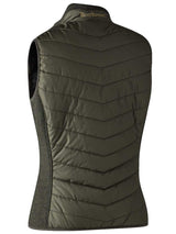 Deerhunter Lady Caroline Padded Waistcoat with Knit is an elegant quilted Shooting or leisure waistcoat with Thinsulate Platinum insulation for a unique lightweight packable warm jacket. This stylish ladies ultra lightweight Ripstop padded jacket is treated with a waterproof finish to repel excess water and dirt to keep the coat lightweight and showerproof. If you are looking for an easy way to smarten up your country wardrobe then this warm gilet is a must have, with diamond quilting on the front and elasticated sides for a feminine flattering finish which holds in the warmth.