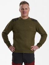 Deerhunter Sheffield Knit w. O-neck is a luxurious traditional men's Lambswool shooting sweater which is naturally warm soft with built in stretch for all the flexibility need when active. This durable men's jumper is designed to be practical for all those outdoor adventures when lightweight warmth is essential without unnecessary bulk. This cosy Lambswool sweater is machine washable and reinforced shoulder pads for protection against wear & tear when shooting or working out side.