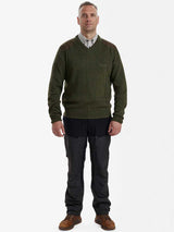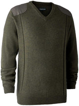 Deerhunter Sheffield Knit w. V-neck is a luxurious Lambswool men's shooting sweater which is naturally warm soft with built in stretch for all the flexibility need when active. This durable men's jumper is designed to be practical for all those outdoor adventures when lightweight warmth is essential without unnecessary bulk. This cosy Lambswool sweater is machine washable and reinforced shoulder pads for protection against wear & tear when shooting or working out side,