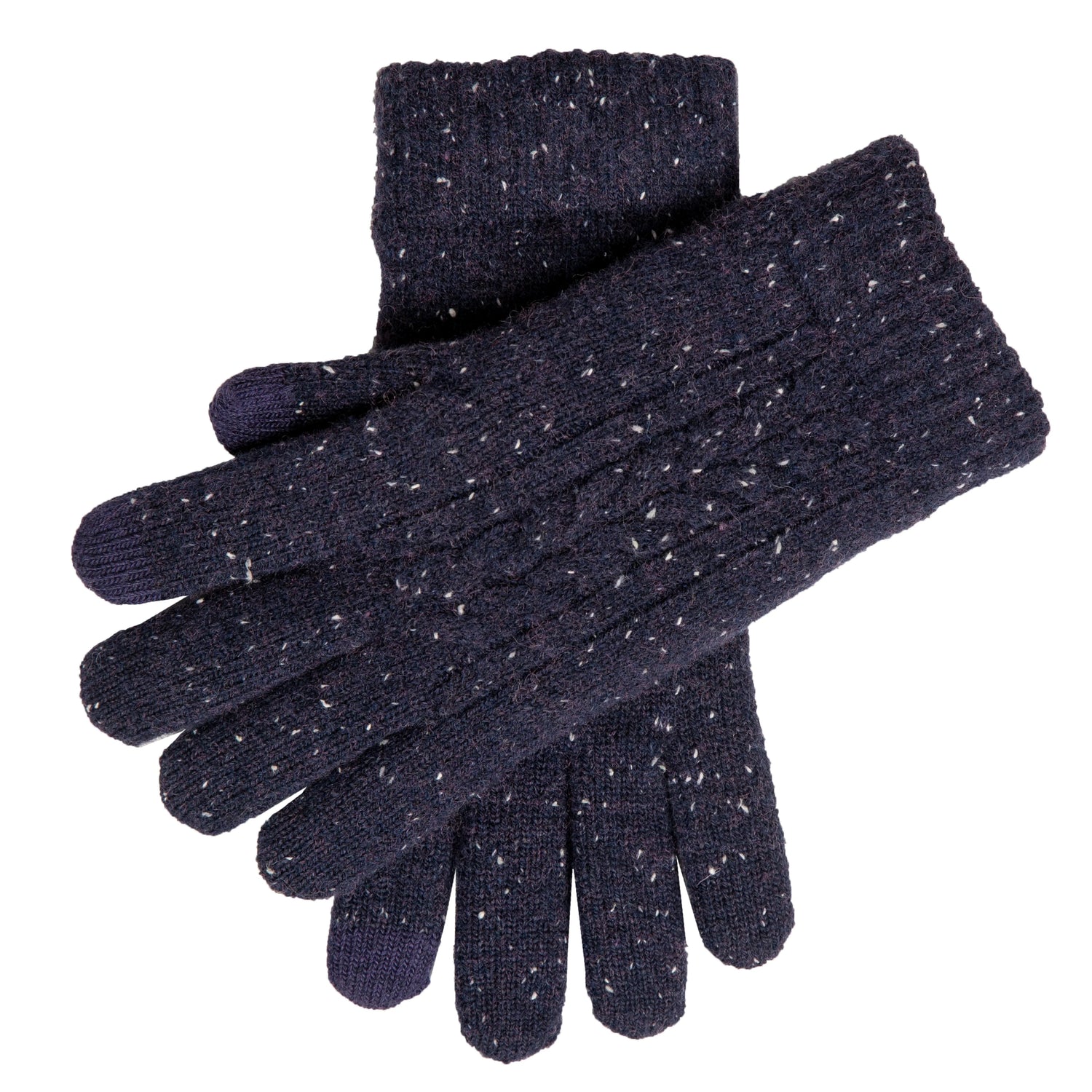 DENTS Lacock Men’s Touchscreen Cable Knit Gloves with Marl Yarn – Navy