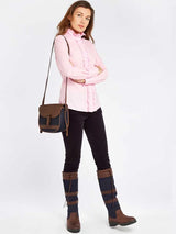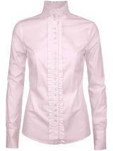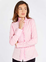 The Dubarry Chamomile long sleeved, fitted ladies blouse features French seams, ruffle detailing and a stand up collar.