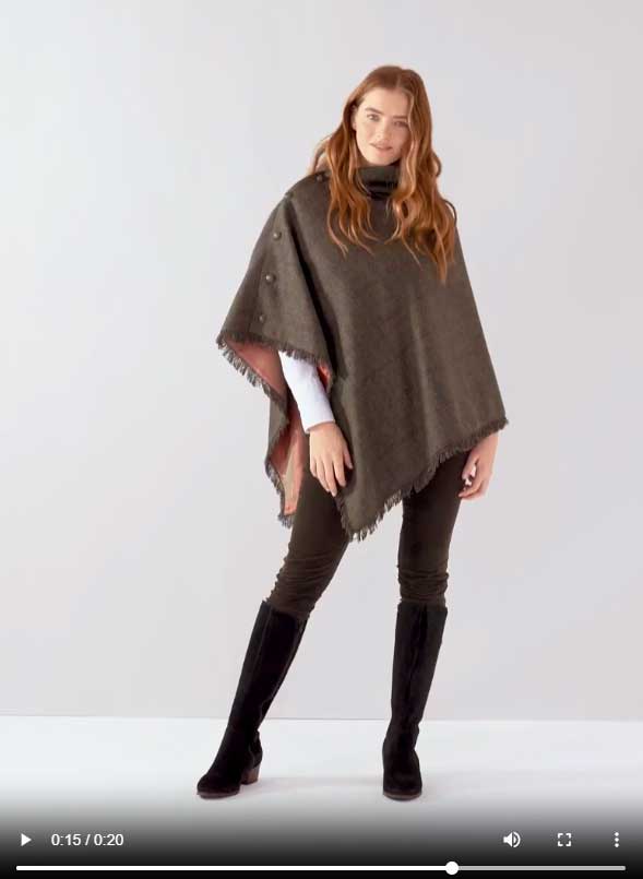 The tweed that should be in every Woman's wardrobe. Dubarry's Hazelwood poncho is a super versatile and comfortable piece which you will find yourself in again and again. Cosy Teflon coated 100% wool drapes elegantly, fastened to one side with smart brass coloured buttons and the one-size-fits-all relaxed style feels as at home at the races as in town or the local pub.
