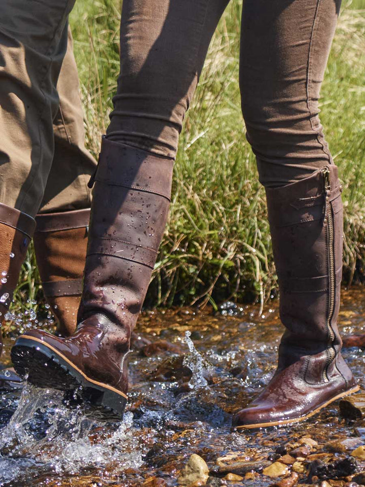 Dubarry Roundstone boot is every inch the protective, mud-beating Country Boot but its shapely silhouette adds an extra touch of elegance. A full-length zip elongates the leg and means extra easy fitting while inside, a breathable GORE-TEX membrane keeps you dry and warm. The quality leather exterior softens to you more each time you wear it but retains its shape beautifully, making this a must-have for the shooting field, just the look with jeans or a perfect partner for your tweeds