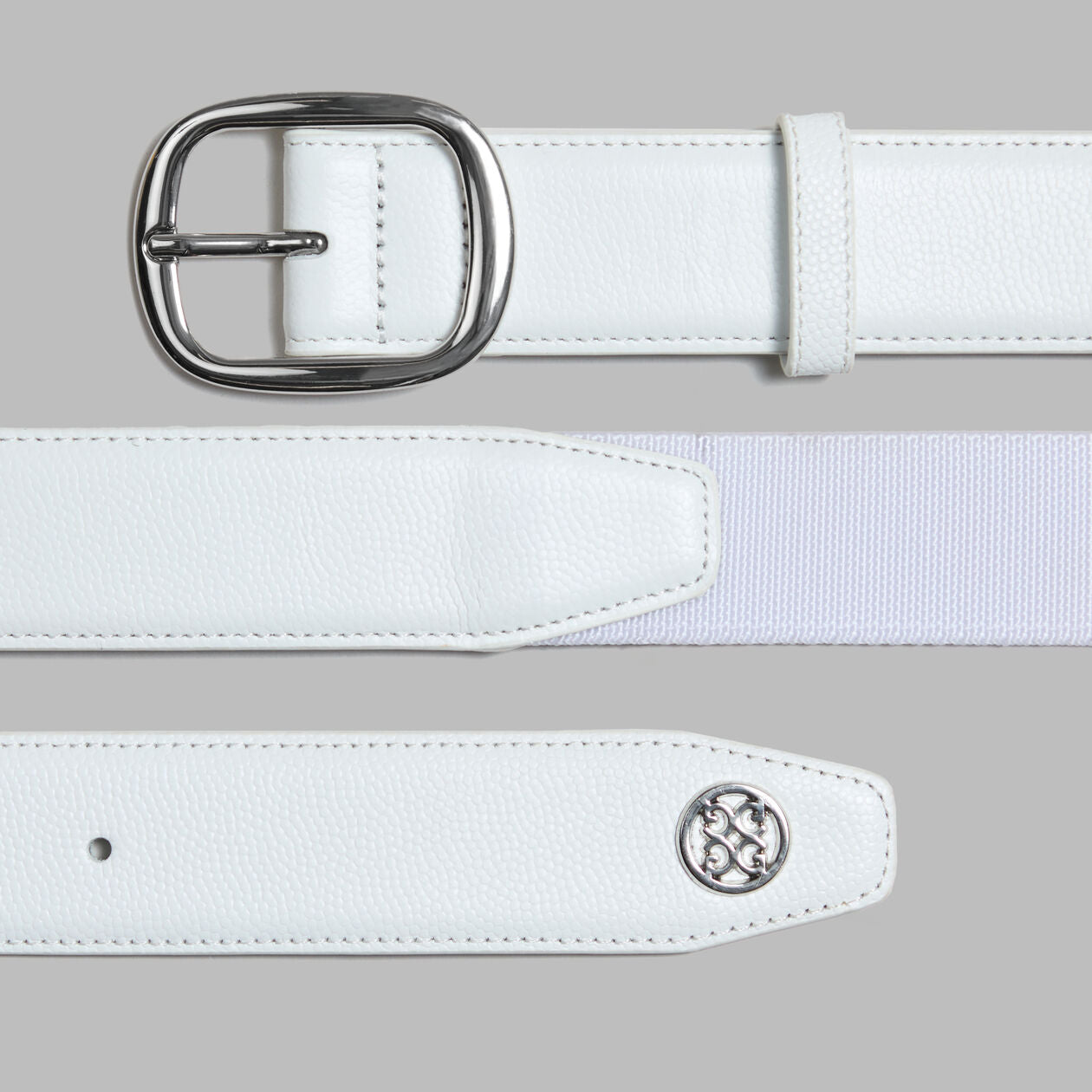 G/FORE Men's Circle G's Webbed Belt – Pebble Full Grain Leather – Snow