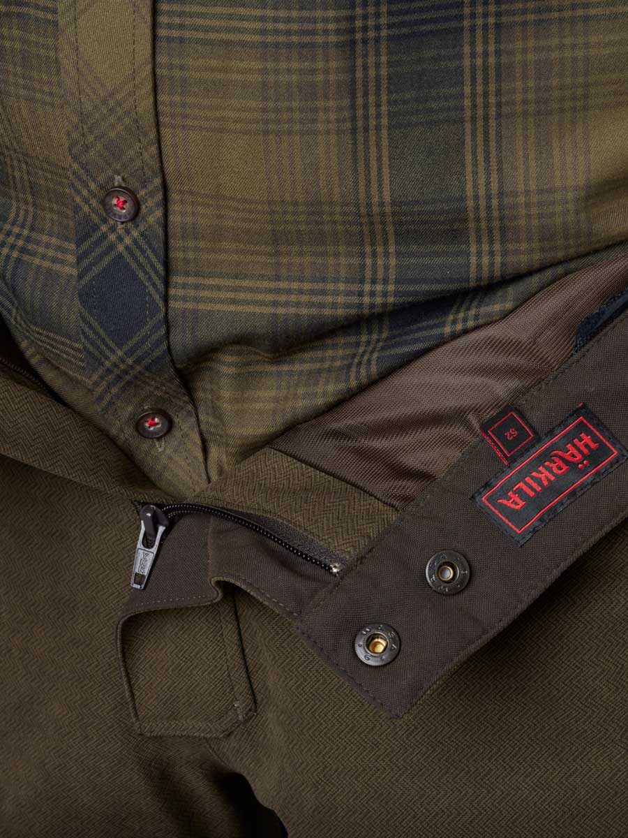 These Harkila The Driven Hunt HWS leather trousers are good-looking and hardwearing, and designed for tough terrain, or for dog handlers looking for a durable, claw-safe garment. They have reinforcements on the front of the thighs made from strong, high-quality leather, as well as a windproof and waterproof HWS® membrane and a range of useful hunting features.