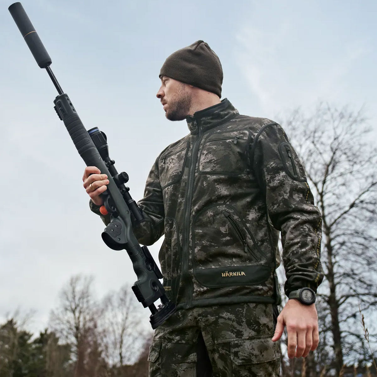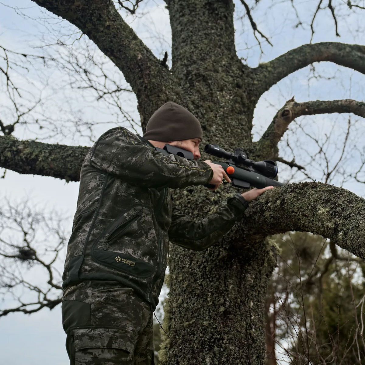 One side features Härkila’s specialised AXIS MSP® Black camouflage to break up your outline in woodland shadows and twilight, while the reverse offers a plain finish for everyday use. The jacket is constructed with a GORE-TEX INFINIUM™ WINDSTOPPER® membrane, providing excellent windproofing while remaining highly breathable during intense activity.