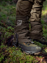 The Harkila Ledge gaiters are made specifically for those who dare to go where the terrain is toughest. Made from a strong nylon/polyester blend, the Ledge gaiters provide protection and make sure to keep unwanted rocks, grit, and gravel out of your boots. The gaiter is stretchy in order to ensure a comfortable fit for many different kinds of boots, and it features a strong hook-and-loop closure at the front placket. The gaiter is adjusted by an elasticated drawstring at the top and it has a shoelace hook to help secure it firmly to the boot.