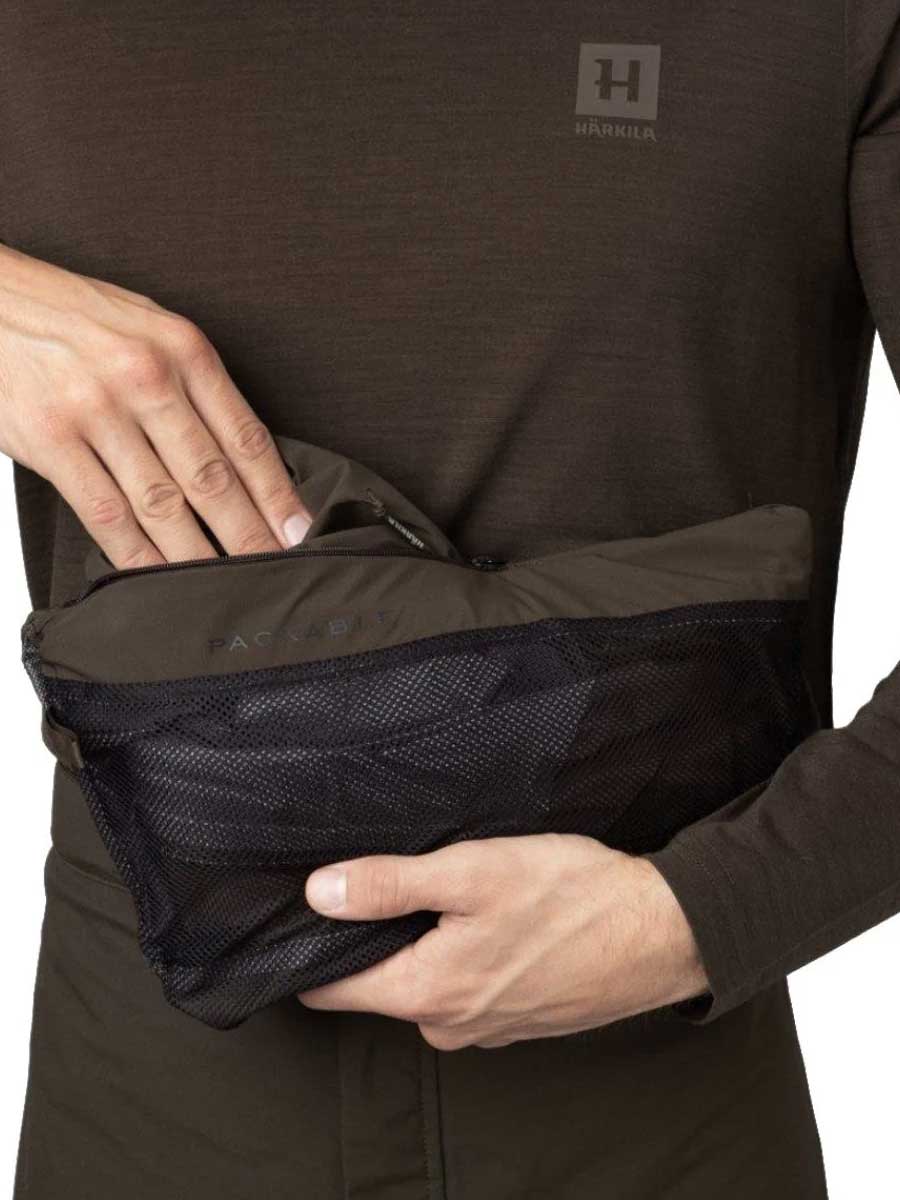 The Harkila Logmar HWS Packable Jacket is your essential gear for active hunting. Built to conquer long treks and variable weather, it's remarkably lightweight and packable, seamlessly integrating into your hunting system. With full stretch and a backpack-friendly design, your movement remains unrestricted. The Härkila Weather System (HWS) membrane technology ensures ultimate protection, while features like an adjustable hood, ventilation zips and practical pockets enhance functionality. Hunt confidently with a jacket that's light, packable and ready for any weather.