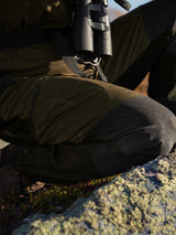 The Harkila Mountain Hunter Hybrid trousers are made for active hunting in rough terrain in changeable weather. The trousers are waterproof at the rear from top to bottom, and at the front from below the knee downwards. On the thighs and knees, the trousers are water-repellent and windproof. This combination makes them ideal for the hunter on the move, and when both strong winds and showers are forecast.