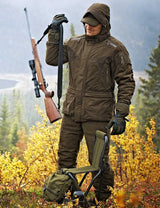 Harkila Visent Jacket is the ultimate jacket for winter hunting. With a Gore-Tex membrane and excellent breathability, the Visent is ideal for both sedentary and active forms of hunting in the colder months. It has numerous well thought out details that ensure every challenge encountered in winter hunting has been taken into account. Magnetic buttons on the front so the jacket can be easily opened without removing your gloves and a game pocket that can be folded out and used as a seat cover. This jacket has lined pockets, a pocket with an orange signal band on the shoulder, radio pockets, pockets for heating pads in the back and a detatchable and adjustable hood.