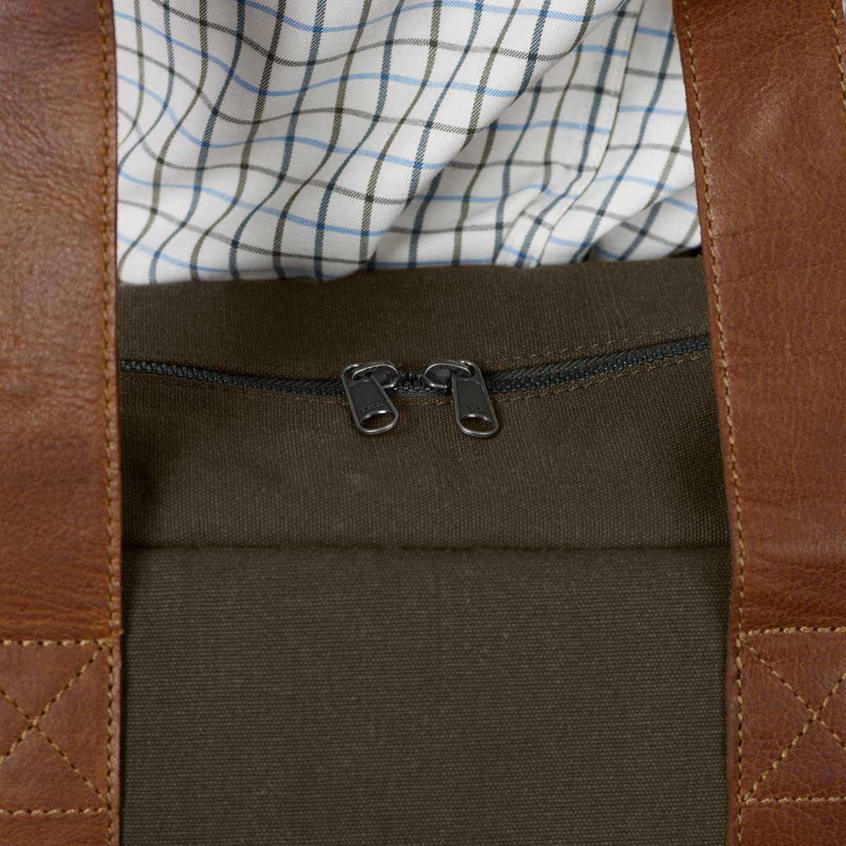 The Harkila weekend bag is a handsome, mid-sized bag in a strong, durable canvas fabric, with a handle, adjustable strap and removable name tag, all in high-quality leather. The bag can be zipped fully open for easy packing. Inside is an elasticated securing strap with a click buckle and a variety of handy pockets for safely storing your belongings.