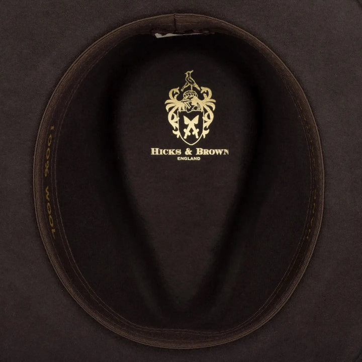 The stunning Hicks & Brown wool felt Suffolk Fedora is a timeless addition to your multi-seasonal wardrobe, hand finished with a cluster of natural feathers fastened behind a branded leather band.