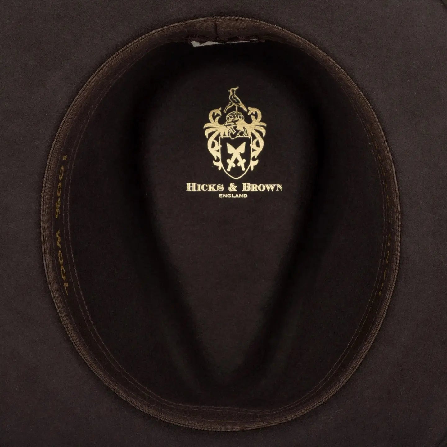 Hicks and Brown Suffolk Fedora Hat - Pheasant Feather Wrap - Dark Brown