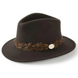 HICKS & BROWN Ladies Suffolk Fedora Hat - Pheasant Feather Wrap - Dark Brown