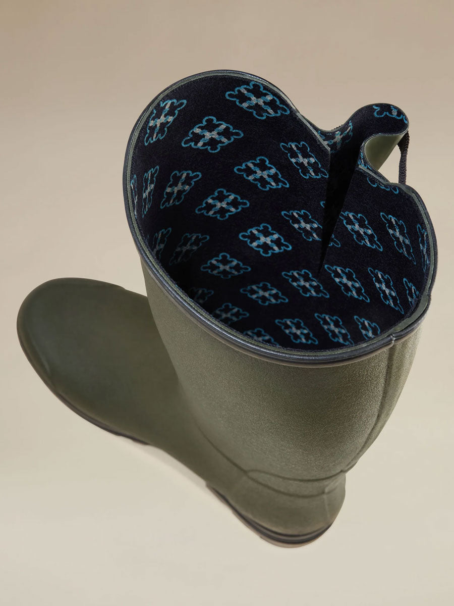 The Le Chameau x National Trust Vierzon wellington boots are made from high quality natural rubber, providing durability and great mobility. The cotton lining provides a comfortable, soft to touch, material, whilst the sole is has a reinforced design. This offers extra support to the foot arch, making the boots more comfortable on long walks.