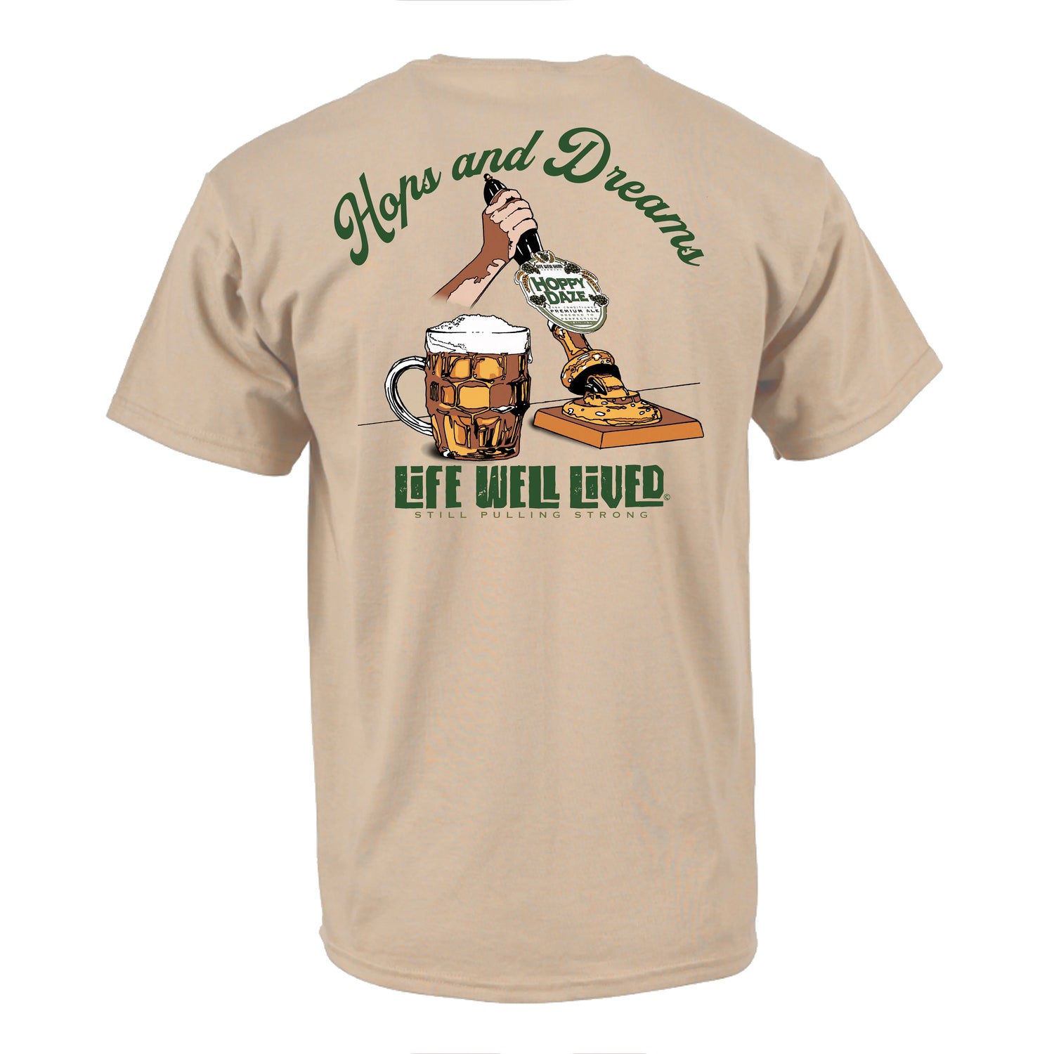 LIFE WELL LIVED Hops & Dreams T-Shirt - Men's Soft Cotton - Tan