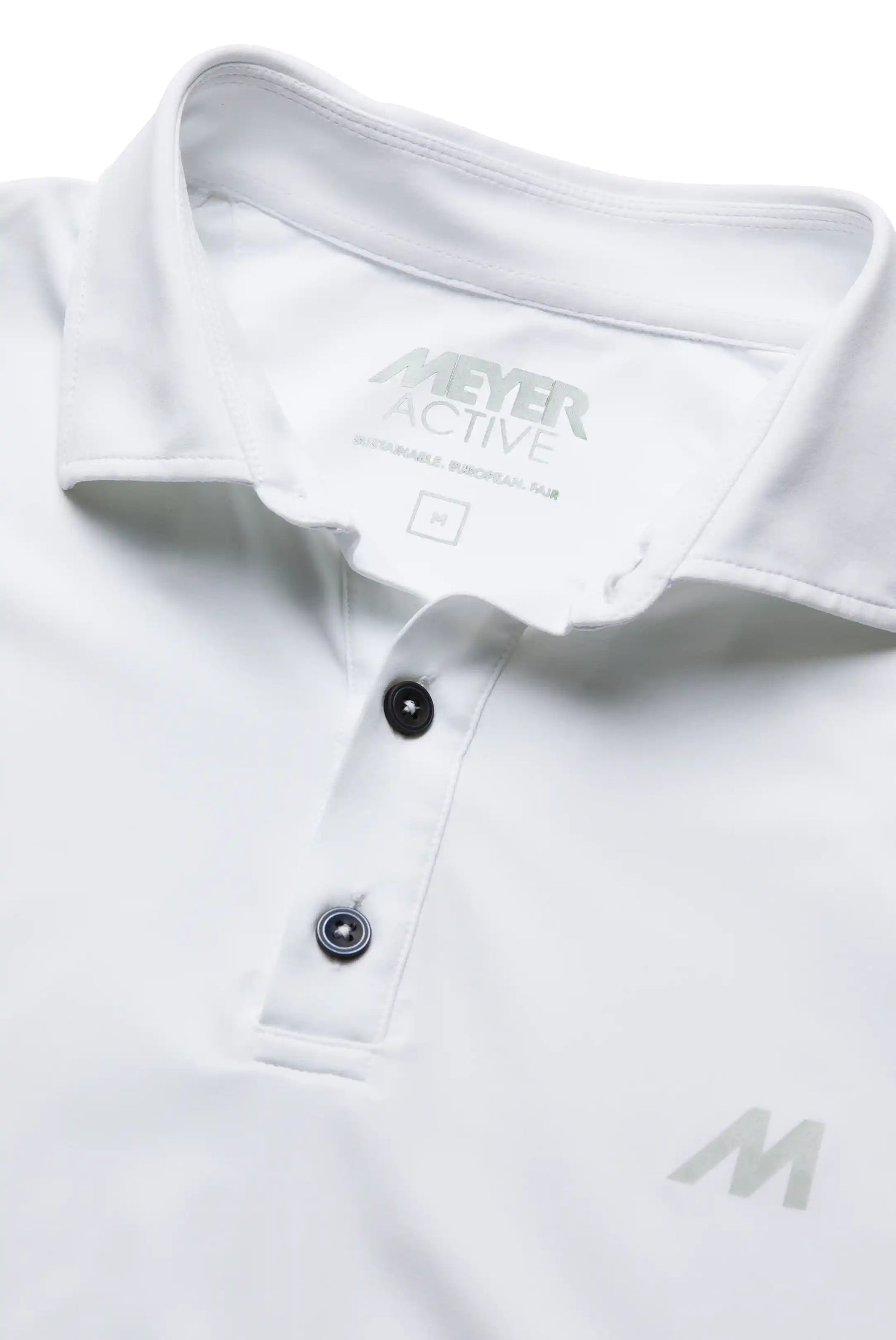 The MEYER Tiger golf polo shirt. Made in Italy by Jersey Lomellina from high quality technical fabric with recycled fibres. Made in Italy. This polo shirt is wonderfully soft and light with a three button collar, it's breathable, quick drying, provides UV protection and always keeps it's shape, allowing you to actively feel good.