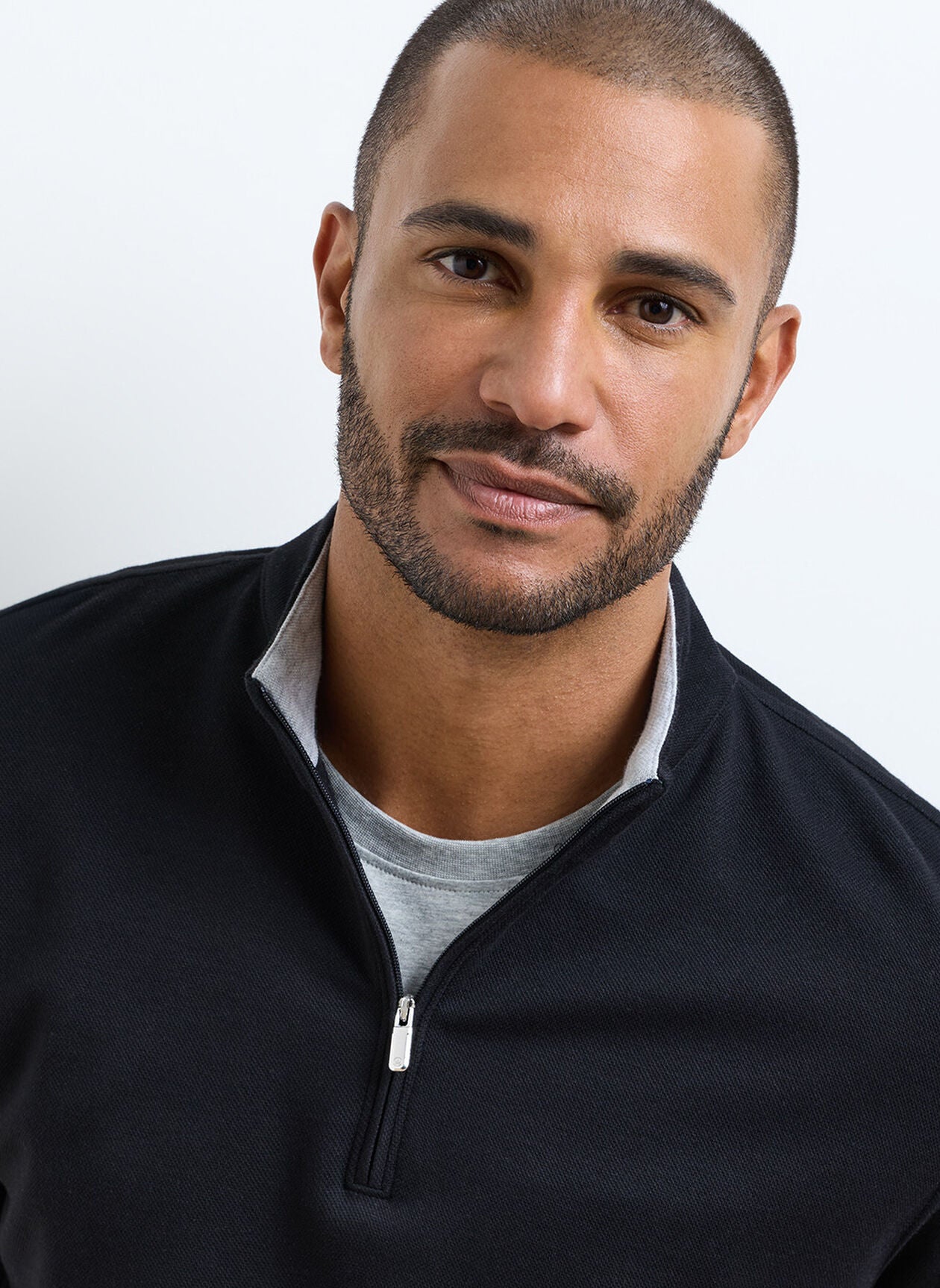 - Quarter-zip placket with ribbed cuffs and hem