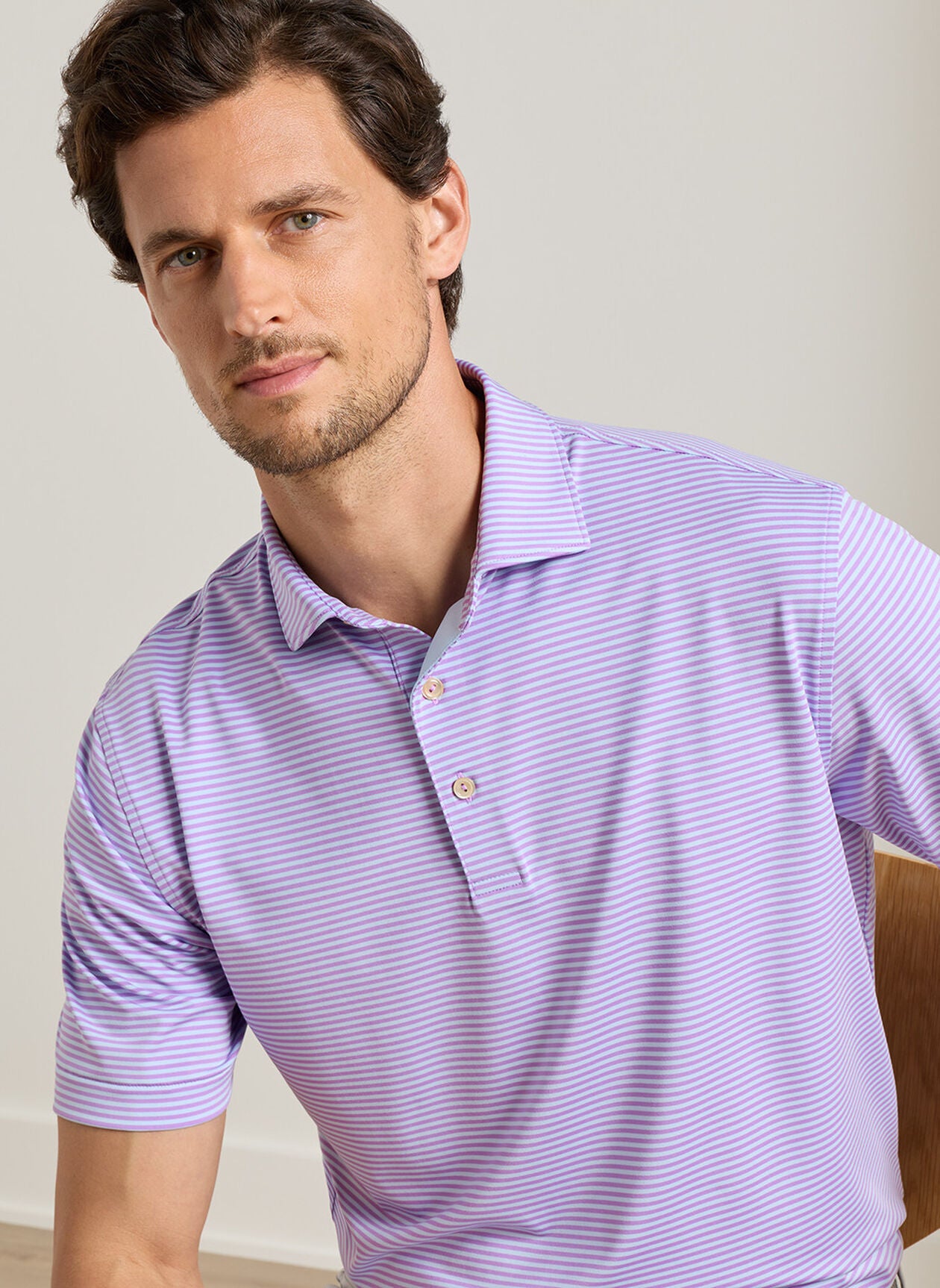 PETER MILLAR Hales Stripe Performance Jersey Polo Shirt – Men’s Classic Fit – Purple Iris