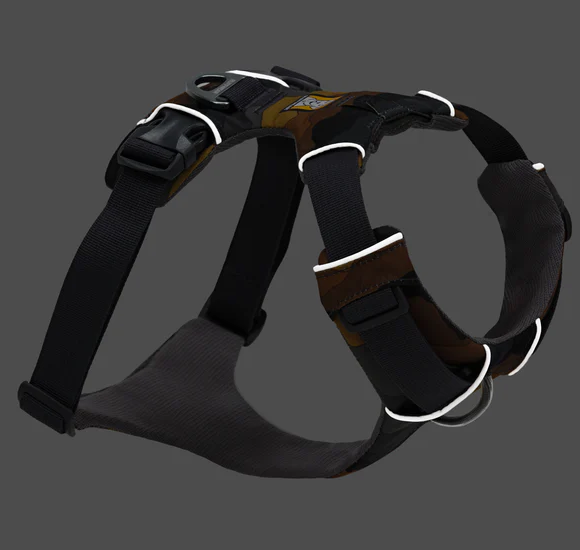 The Ruffwear Front Range Harness is a padded everyday dog harness that is easy to put on and comfortable for dogs to wear. A key piece of gear for canines embarking on a life of adventure with their humans, the harness features two leash attachment options: an aluminum V-ring centered on the dog's back for everyday walks, and reinforced front clip webbing at the dog's chest to redirect dogs that pull on leash. The ID pocket keeps dog tags quiet and easily accessible, and the reflective trim and light loop for The Beacon™ boost visibility in low-light conditions.