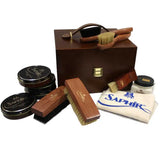 The Saphir Wooden Valet box contains all of the essential shoe care items required to care for your Shoes.