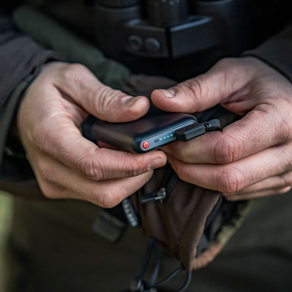 Each pair comes supplied with two 5000 mAh power banks, neatly housed in zipped compartments, providing up to six hours of continuous heat. An anti-slip palm ensures a secure grip on your firearm, dog lead, or gear, while adjustable wrist and cuff closures lock in warmth and keep the elements out.