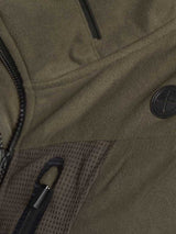 The innermost layer of the jacket is made from a single layer of mesh that helps carry moisture away from the body and makes the jacket breathable. The outermost layer of the jacket under the arms, at the sides and in the hood is also made of mesh, to ensure optimum breathability during exertion. The jacket is made from an ultraflex material, for maximum comfort and flexibility. The jacket also features body mapping regulation, which ensures it provides your body with warmth exactly where needed, and less warmth where you need cooling and ventilation. This is a highly practical garment, with 5 pockets: a radio pocket, two front pockets and two side pockets. The side pockets, which are the largest on the jacket, are well covered. All the pockets have smart zips, which stay in place, as if magnetised. When zipped up, a small piece of fabric covers the zip head, leaving just the tab exposed. This is very user-friendly. The teeth of the zip are also concealed behind tape, which makes it fully waterproof. The jacket also has an adjustable, detachable hood, and wide elastic at the wrists, which also have adjustable velcro closures. The Climate Hybrid Jacket will be a warm accompaniment for you, especially when shooting from a stand, when you absolutely need to stay warm and dry – no matter whether you are actually sedentary or on the move.