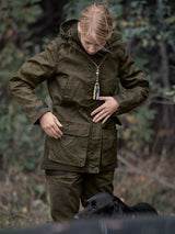 Seeland Key-Point Kora Jacket effortlessly blends tradition with functionality, making it an indispensable piece for outdoor enthusiasts. Crafted from waxed and fortified with a PFAS-free Seetex® membrane, it guarantees weather protection. This jacket comes equipped with handwarmer pockets, spacious front pockets and a game pocket. A detachable, adjustable hood, two-way zipper and action back ensure comfort, while the adjustable waistband and cuffs offer a custom fit. Additional features include a quick load strap and a convenient inner pocket. Pair with the Key-Point Kora trousers for a complete look.