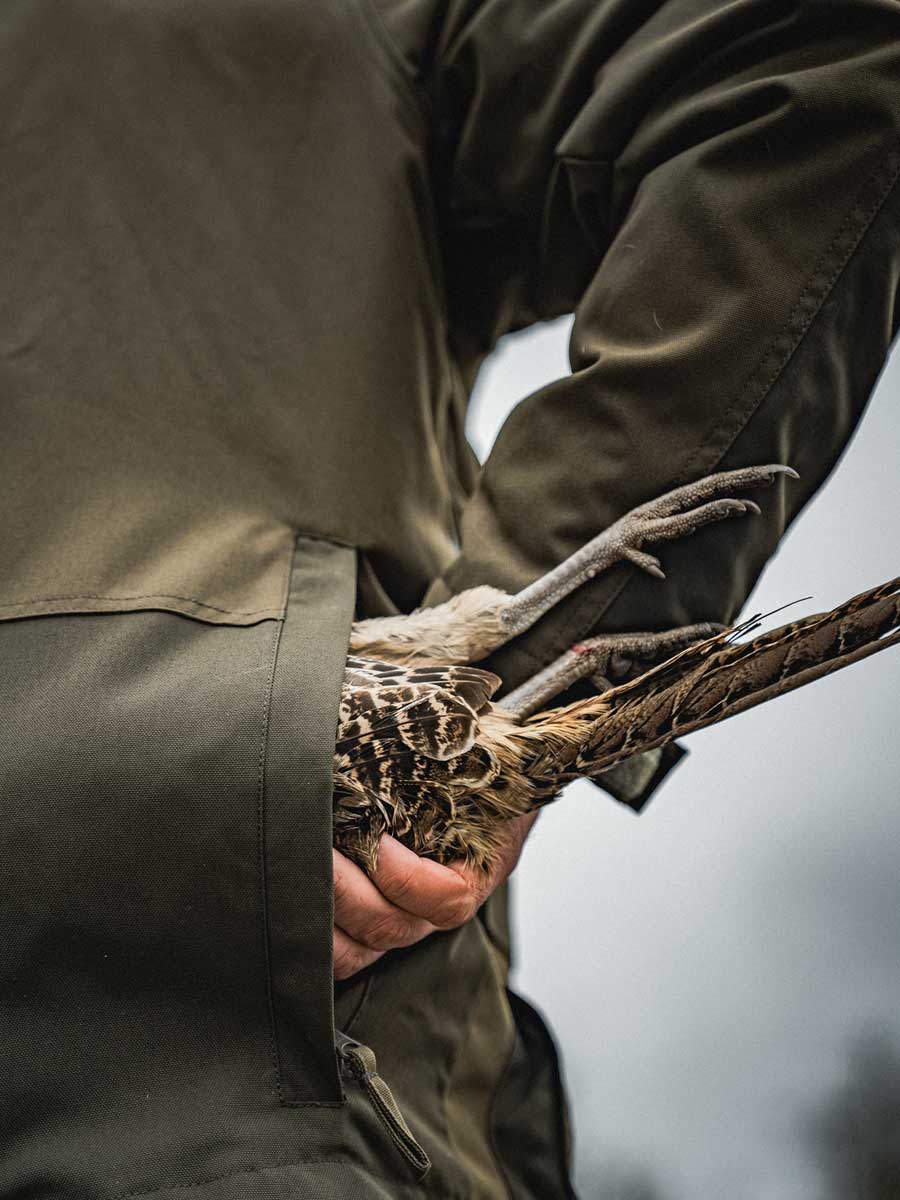 The Seeland Trax Jacket is an essential part of the rugged Trax line, designed for the relentless hunter or dog keeper. Crafted from 100% polyester with a PFAS-free Seetex® membrane, it's built to withstand harsh conditions. This jacket features a detachable zip hood, ample pocket space with water-repellent zippers and a game pocket, tailored for driven hunts. Its anti-soaking lining, adjustable hemline and storm cuffs add to its functionality. Pair with the Trax Trousers and Cap for a complete look.