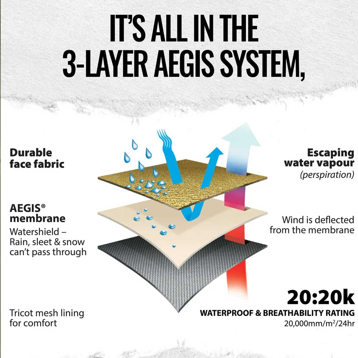 - Gen II AEGIS® Watershield 3-Layer Strata fabric