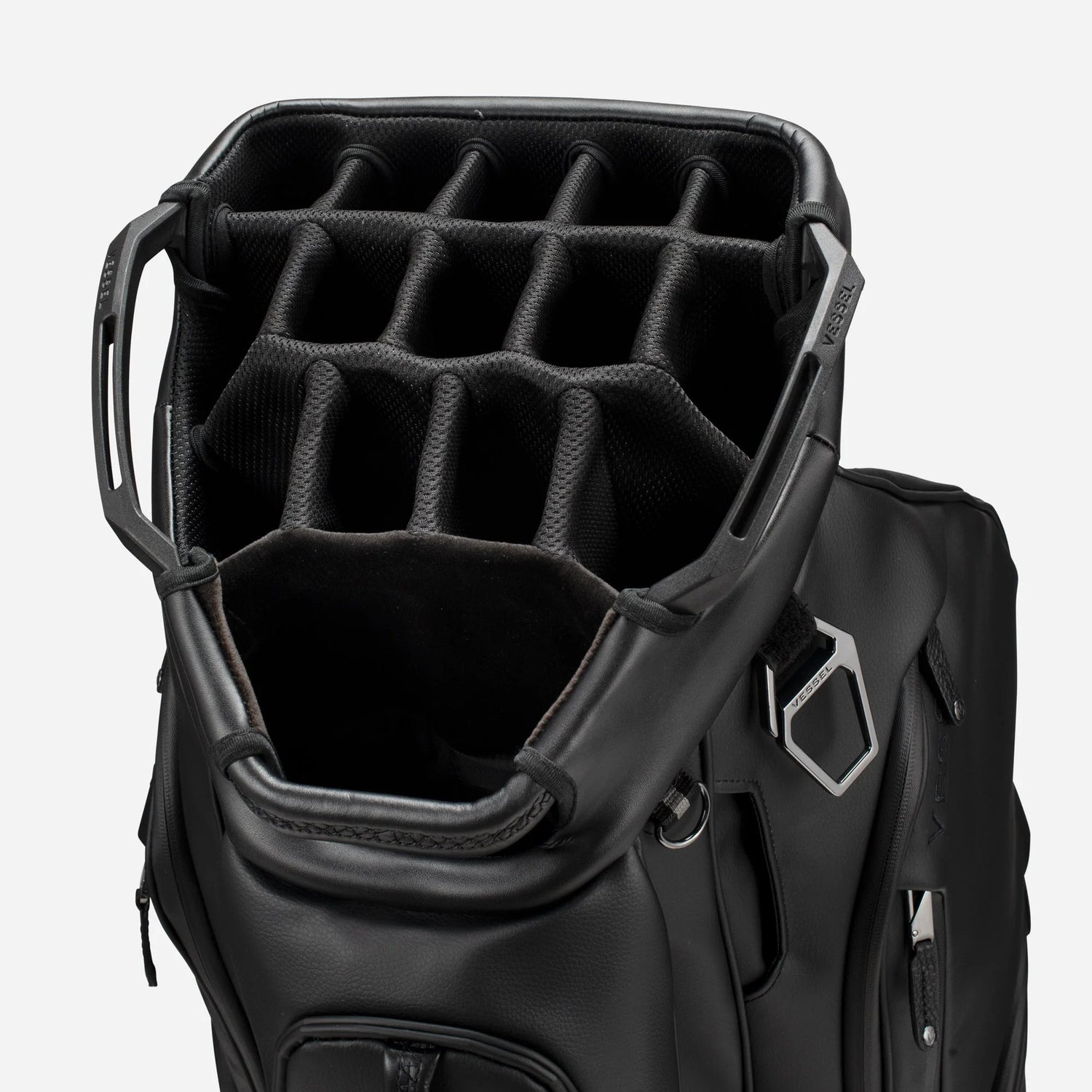 Crafted for players who demand precision and performance, the Vessel Lux Pro Cart Bag delivers elite-level organisation and access. Built specifically for trolley and cart use, it features a smart cart strap pass-through, top-access pocket pod, and dual forward-facing pockets — all designed for use while in motion. Choose from 15-way or 7-way top options, each with full-length dividers and a dedicated putter well. With a solid base, premium materials, and a sleek silhouette, this is a true statement piece for those who expect more from their gear.